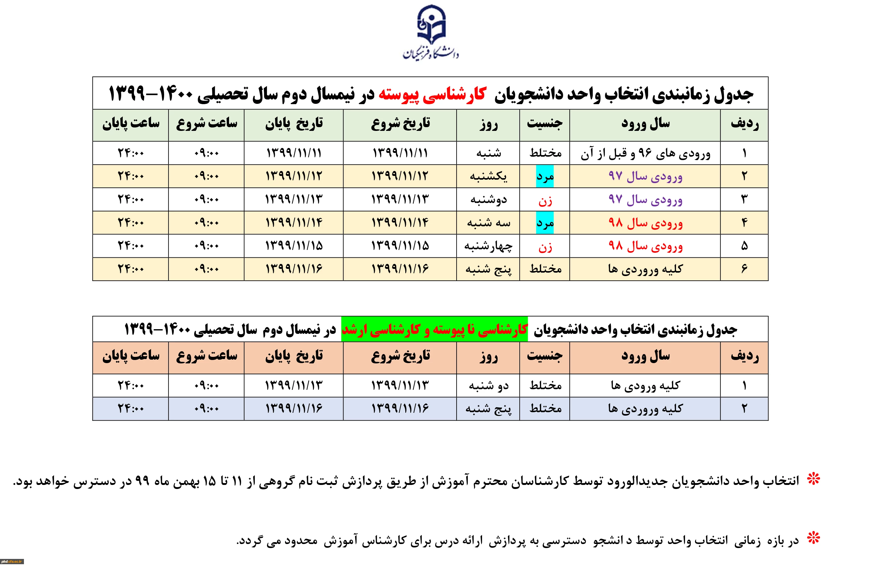 امتیاز دهید : جدول زمانبندی انتخاب واحد نیمسال دوم دانشجومعلمان پردیس شهیدهاشمی نژاد یکشنبه 12 بهمن 1399 ساعت 10:50