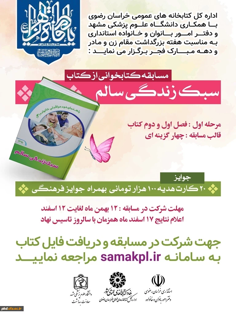 اداره کل کتابخانه های عمومی خراسان رضوی برگزار می کند:مسابقه کتابخوانی از کتاب سبک زندگی سالم 2