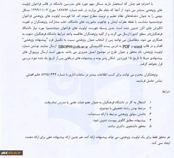 فراخوان اولویت های پژوهشی متمم سال 1399 2