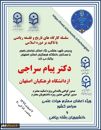 گزارش برگزاری کارگاه علمی پژوهشی دانش افزایی و توانمندسازی کشوری " تاریخ و فلسفه ریاضی با تاکید بر دوره اسلامی" وپژه اساتید و دانشجویان رشته ریاضی سراسر کشور. 2
