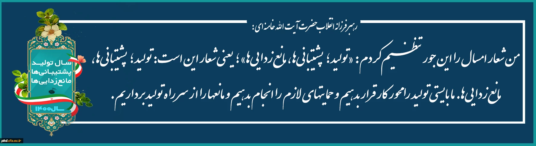 شعار سال ۱۴۰۰: «تولید؛ پشتیبانی ها، مانع زدایی ها» 2