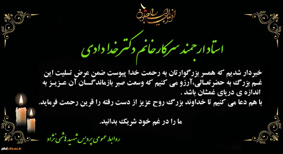 پیام تسلیت به استاد ارجمند سرکارخانم دکتر خدادای