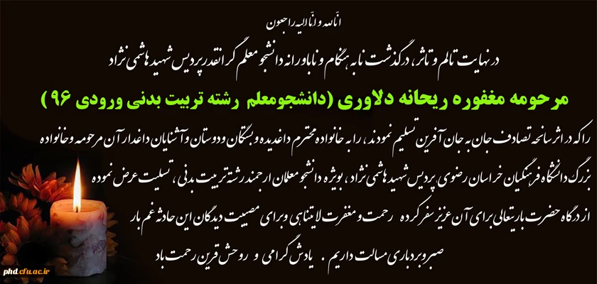 پیام تسلیت به مناسبت  درگذشت دانشجو معلم مرحومه ریحانه دلاوری