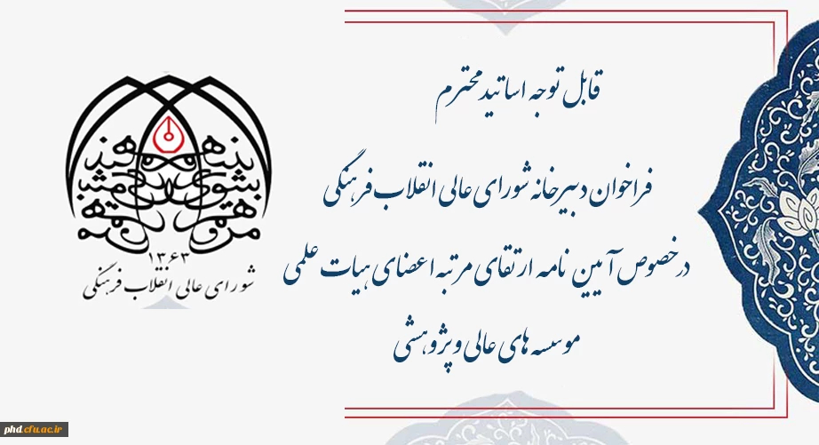 فراخوان دبیرخانه شورای عالی انقلاب فرهنگی در خصوص آیین نامه ارتقای مرتبه اعضای هیات علمی موسسه های عالی و پژوهشی 2