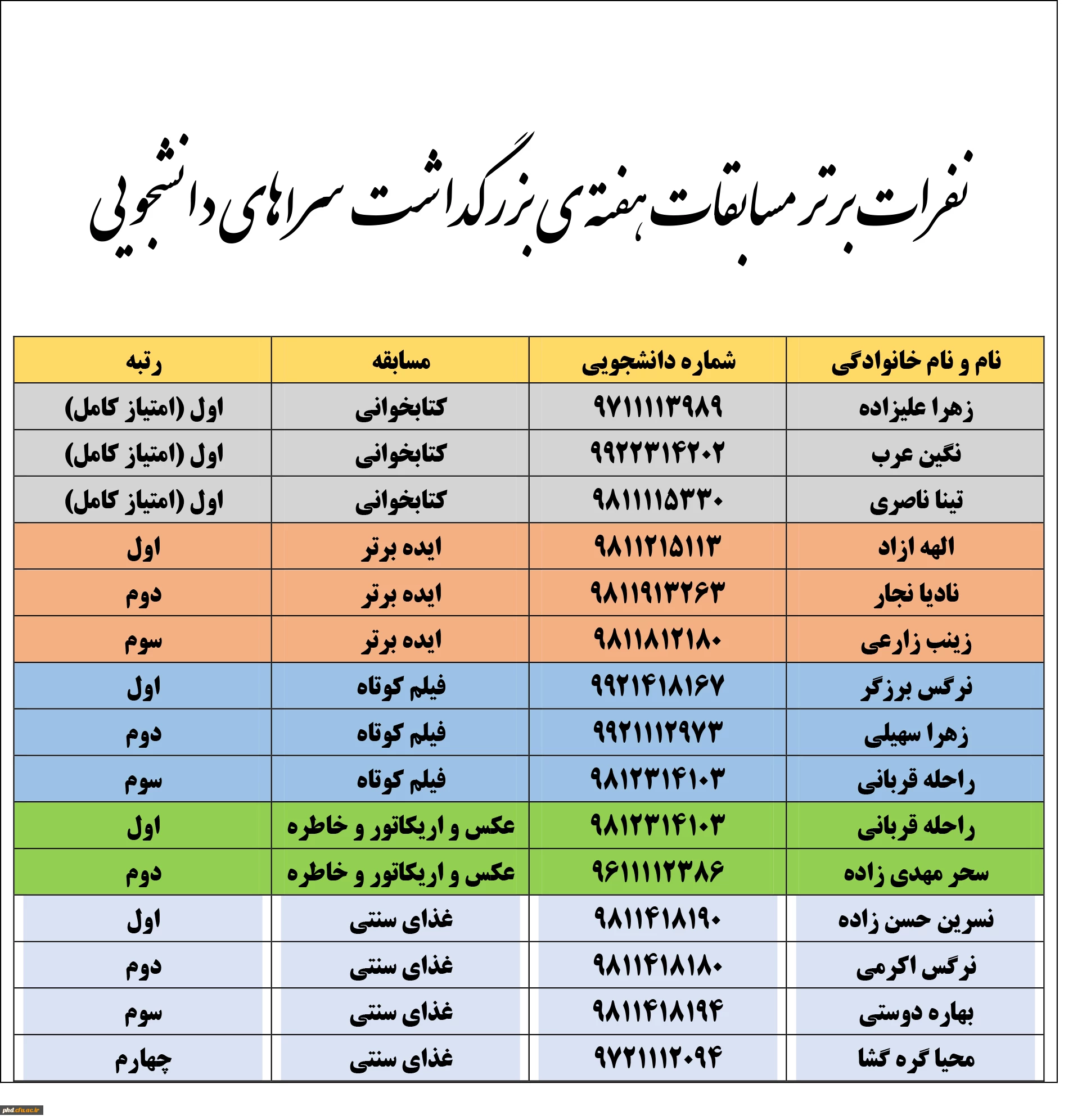 نفرات برتر مسابقات هفته ی بزرگداشت سراهای دانشجویی