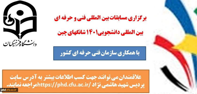 امتیاز دهید : برگزاری مسابقات بین المللی فنی و حرفه ای بین المللی دانشجویی1401 شانگهای چین 2 شنبه 12 تیر 1400 ساعت 11:17