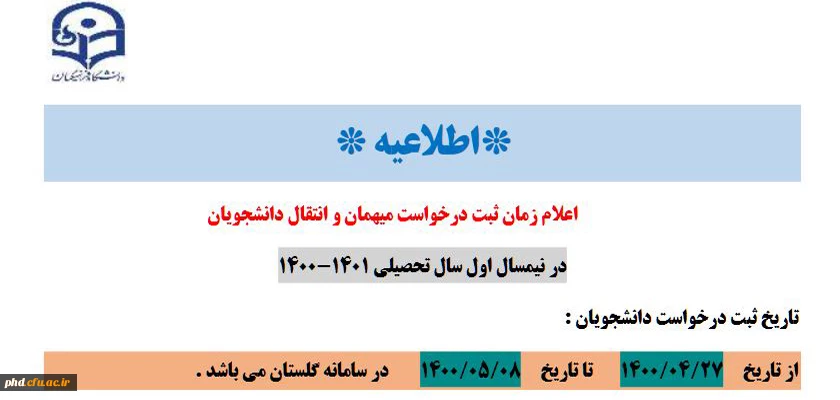 اعلام زمان ثبت درخواست میهمان وانتقال دانشجویان 2