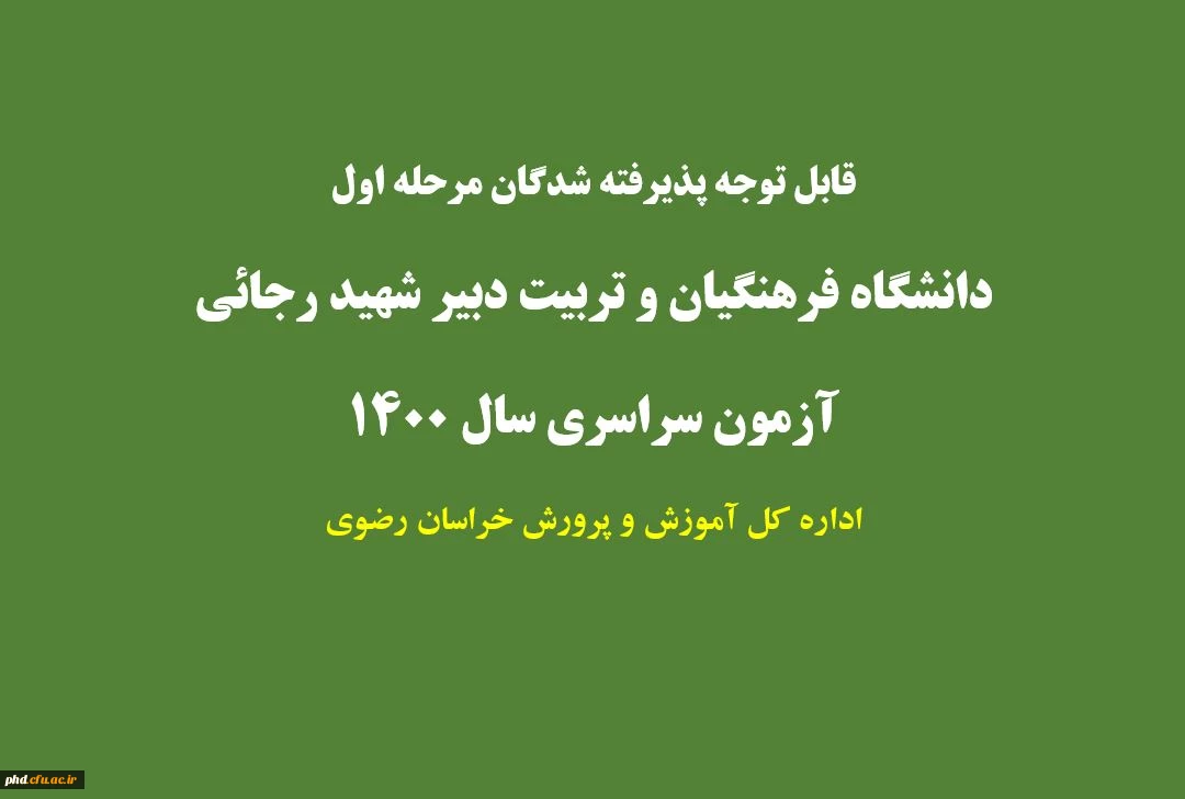 امتیاز دهید : قابل توجه پذیرفته شدگان مرحله اول دانشگاه فرهنگیان وتربیت دبیر شهید رجایی 2 سهشنبه 2 شهریور 1400 ساعت 9:47