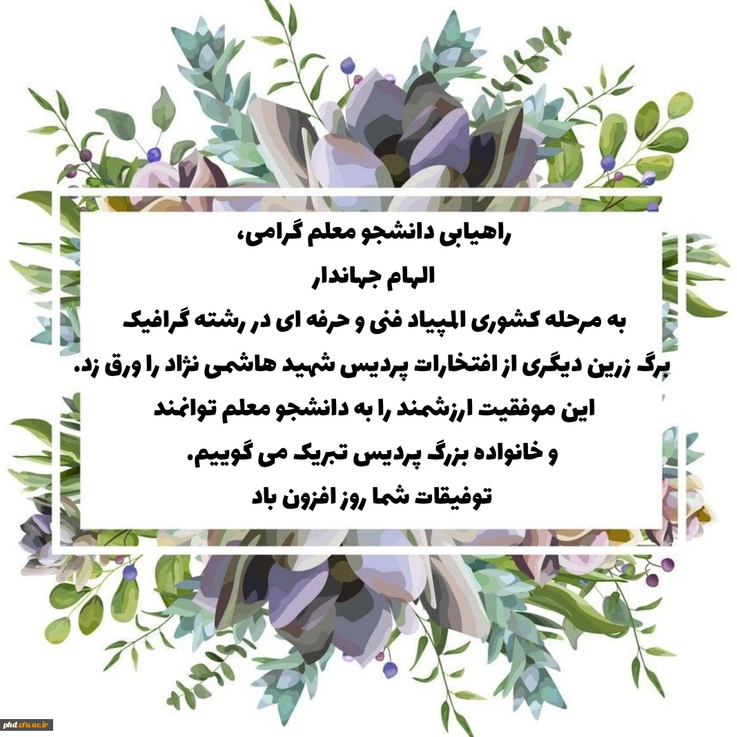 امتیاز دهید : راهیابی دانشجومعلم الهام جهاندار به مرحله کشوری المپیاد فنی و حرفه ای 3 چهارشنبه 5 آبان 1400 ساعت 11:09