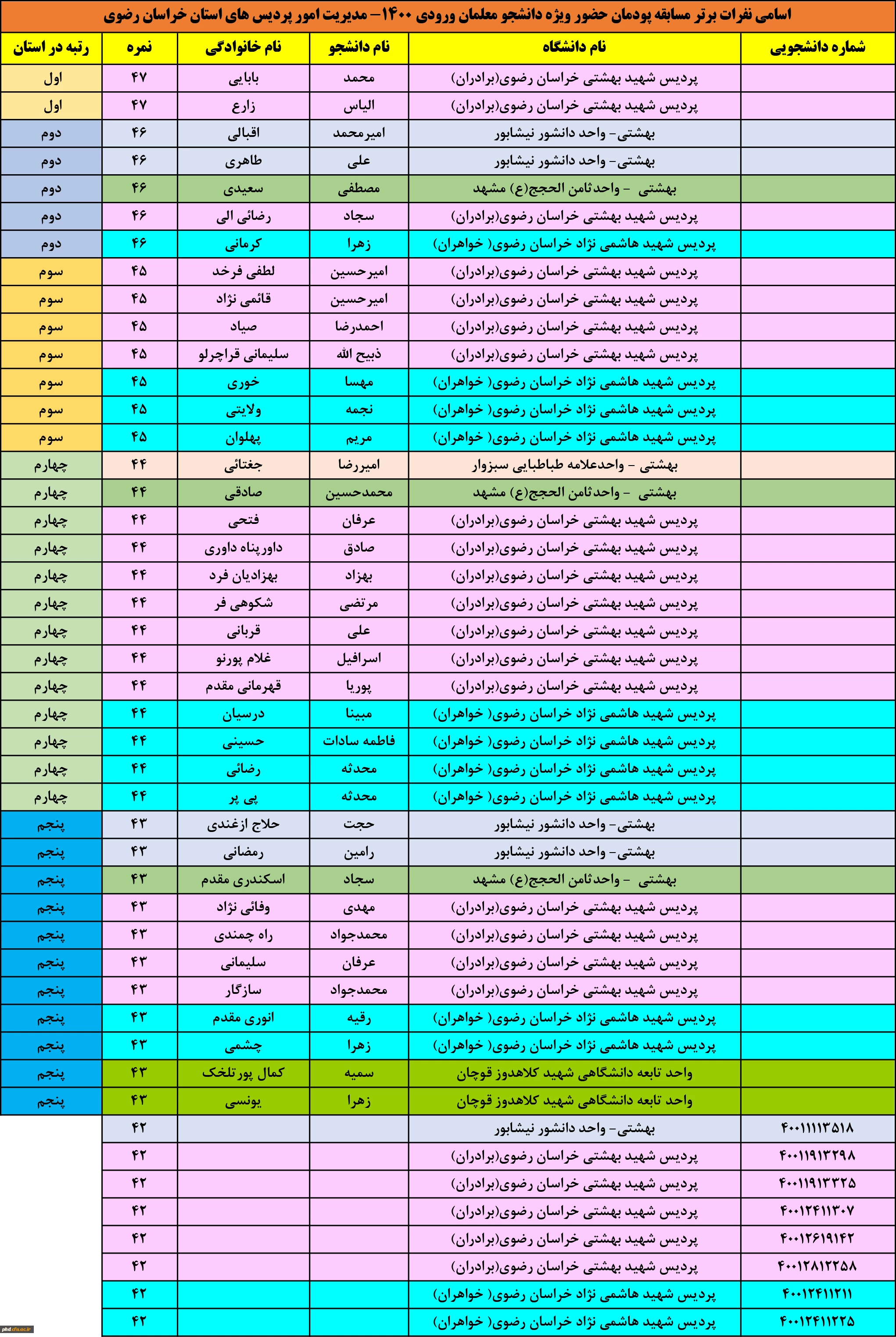 برترین های مسابقه پودمان حضور دانشگاه فرهنگیا ن - پردیس شهید هاشمی نژاد ویژه ی دانشجو معلمان ورودی 1400