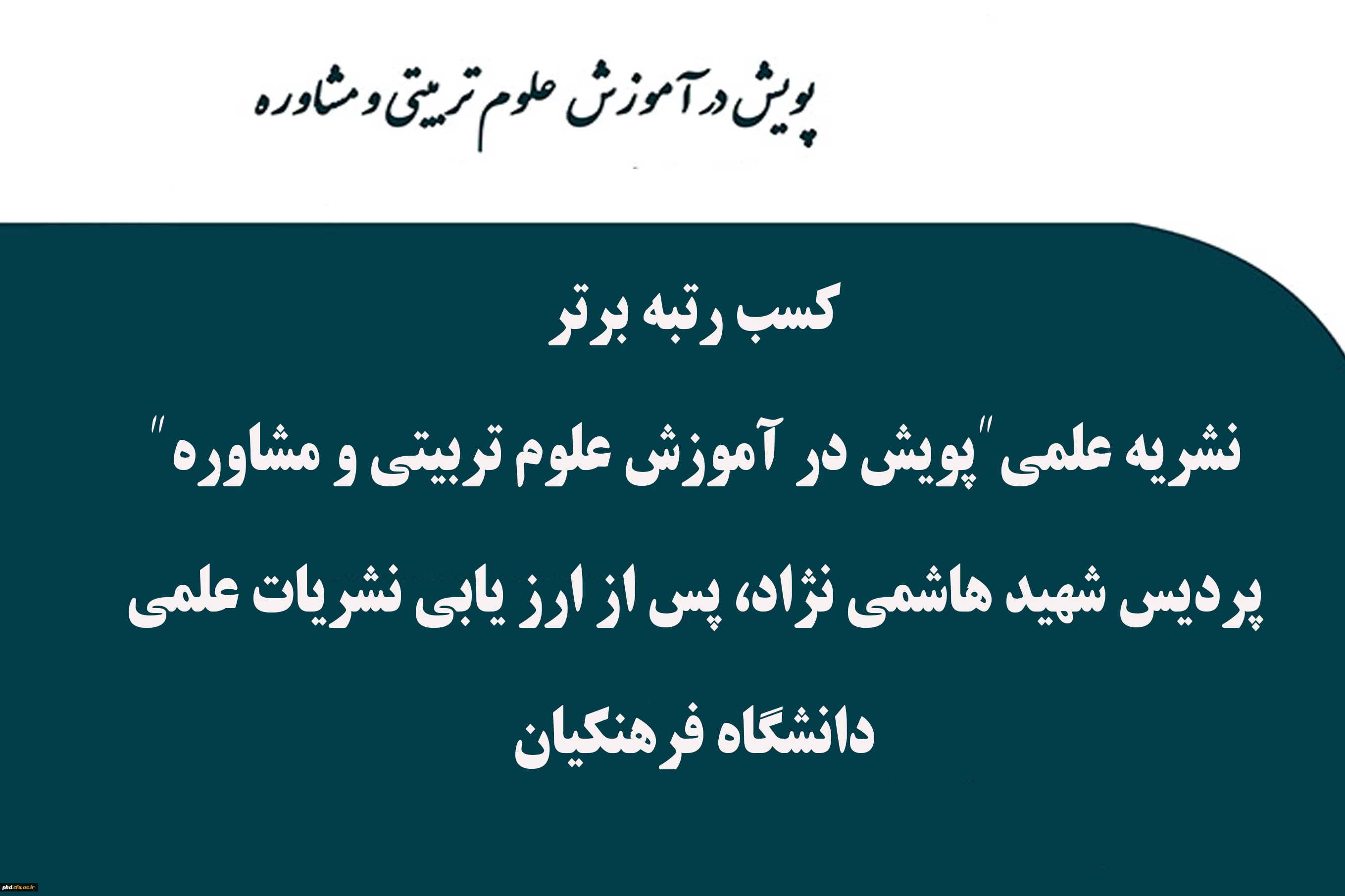 امتیاز دهید : کسب رتبه برتر نشریه علمی"پویش در آموزش علوم تربیتی و مشاوره" پردیس شهید هاشمی نژاد، 2 دوشنبه 10 آبان 1400 ساعت 19:18