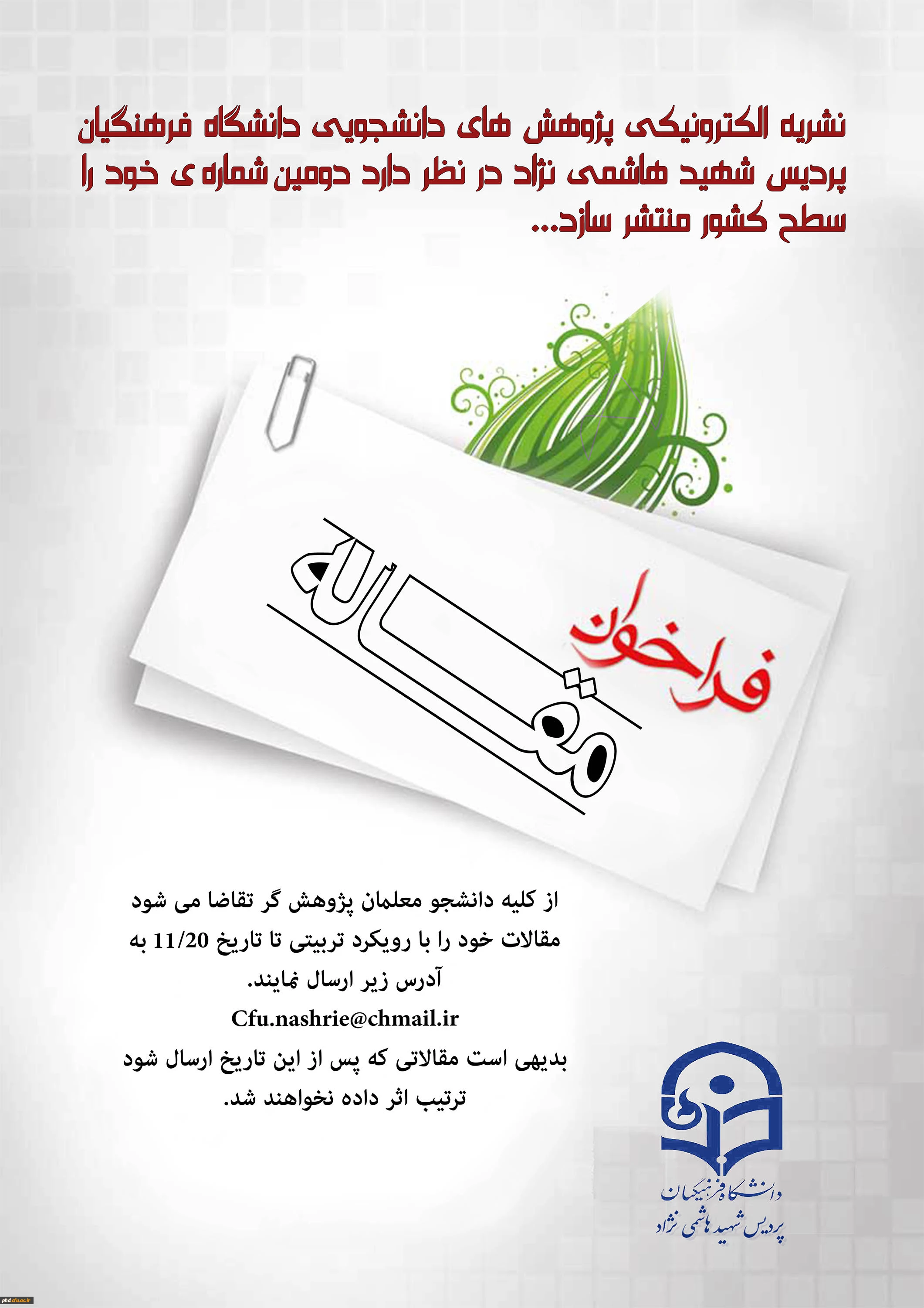 دومین شماره نشریه الکترونیکی پژوهش های دانشجویی دانشگاه فرهنگیان پردیس شهید هاشمی نژاد