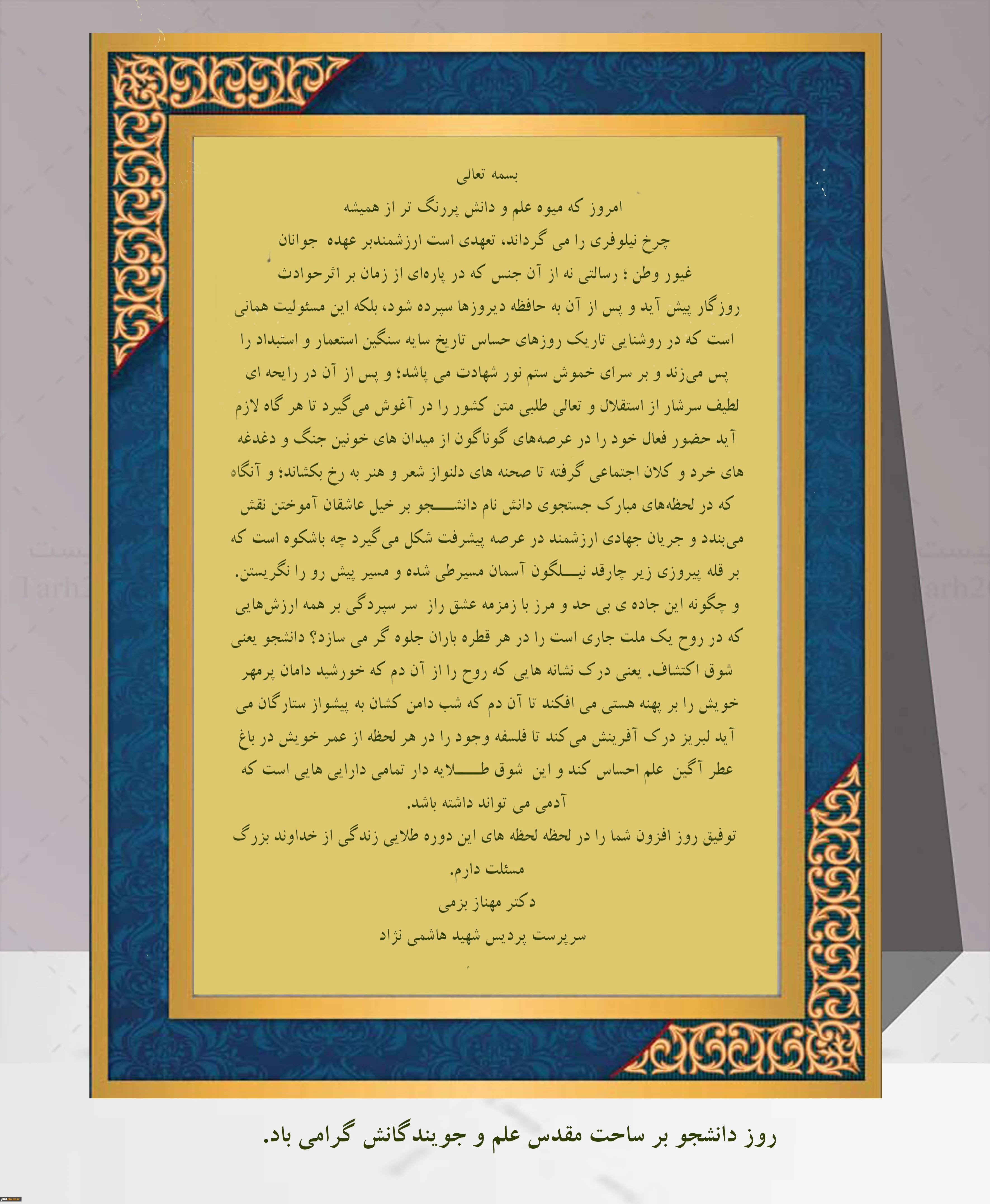 پیام سرپرست پردیس شهید هاشمی نژاد به مناسبت روز دانشجو