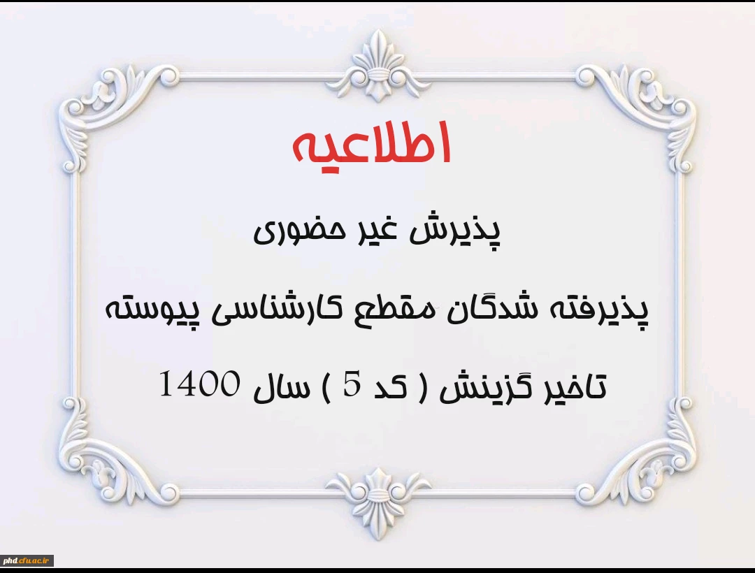 اطلاعیه پذیرش غیر حضوری پذیرفته شدگان مقطع کارشناسی پیوسته تاخیر گزینش ( کد 5 ) سال 1400 2