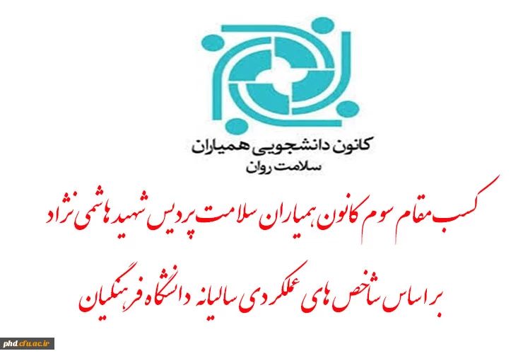 کسب مقام سوم کانون همیاران سلامت پردیس شهید هاشمی نژاد بر اساس شاخص های عملکردی سالیانه دانشگاه فرهنگیان 2