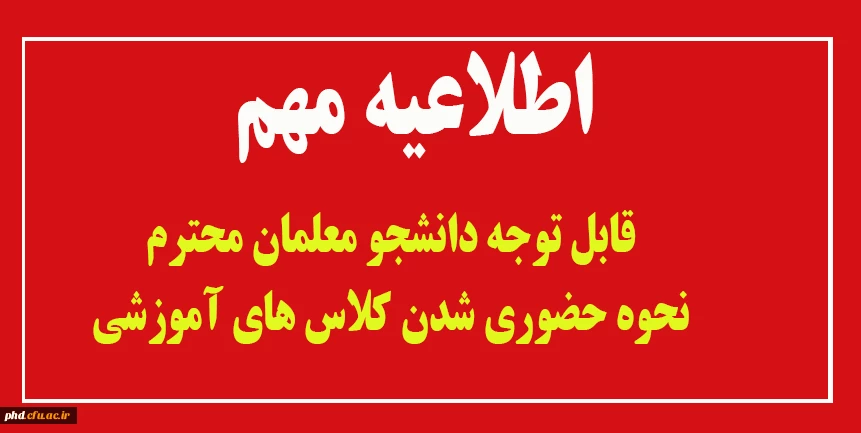 امتیاز دهید : قابل توجه دانشجو معلمان محترم نحوه حضوری شدن کلاس های آموزشی از فروردین 1401 2 یکشنبه 7 فروردین 1401 ساعت 13:41