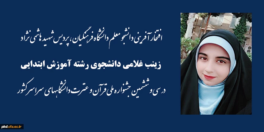 افتخار آفرینی دانشجو معلم دانشگاه فرهنگیان، پردیس شهید هاشمی نژاد در سی و ششمین جشنواره ملی قرآن و عترت دانشگاههای سراسر کشور  2