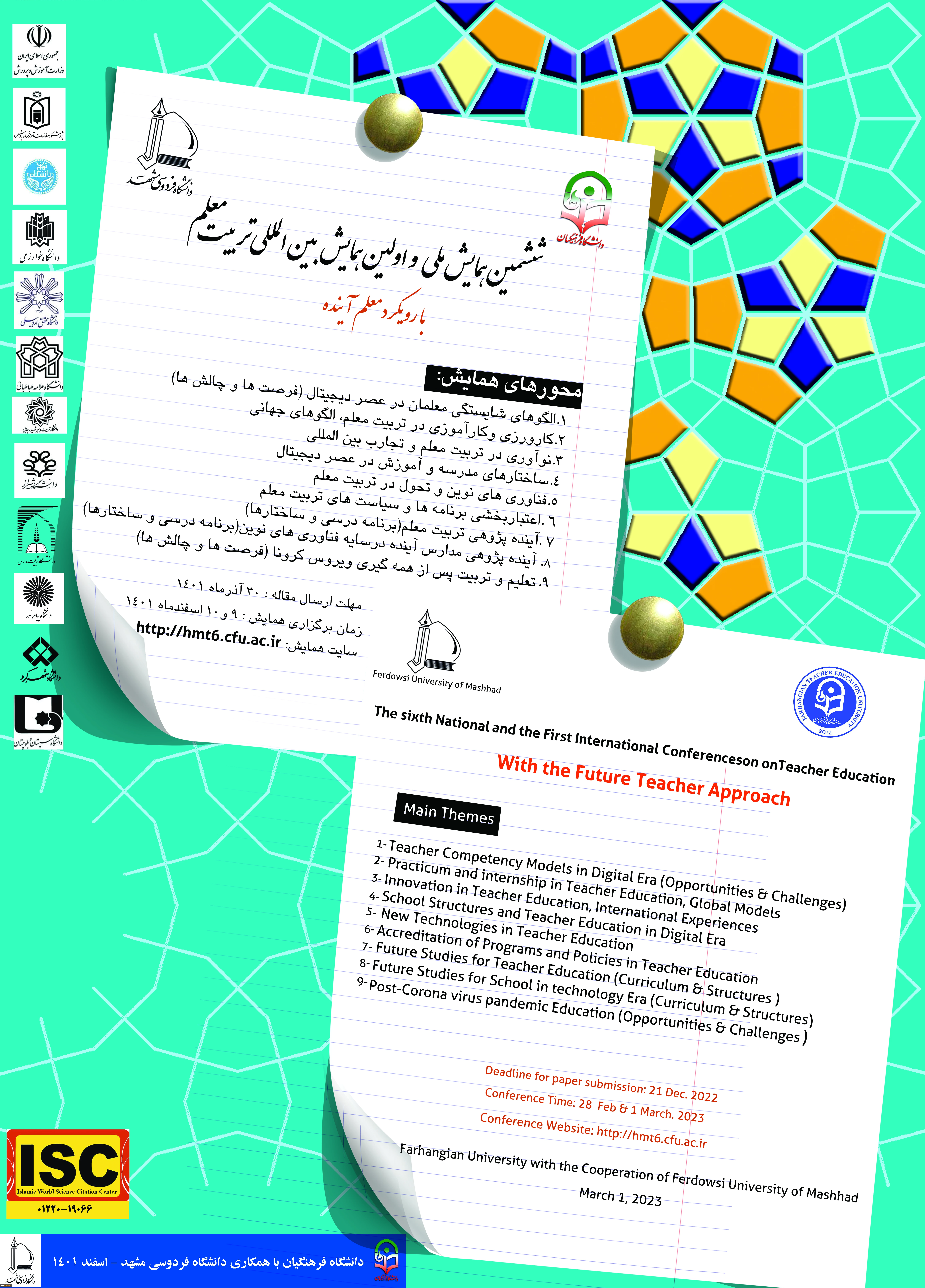تمدید زمان ارسال مقاله برای ششمین همایش ملی و اولین همایش بین المللی تربیت معلم با رویکرد " معلم آینده "  2