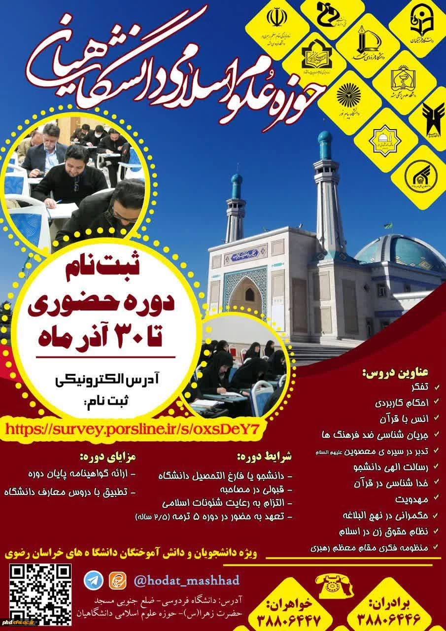 آغاز ثبت نام دوره های حضوری حوزه علوم اسلامی دانشگاهیان
