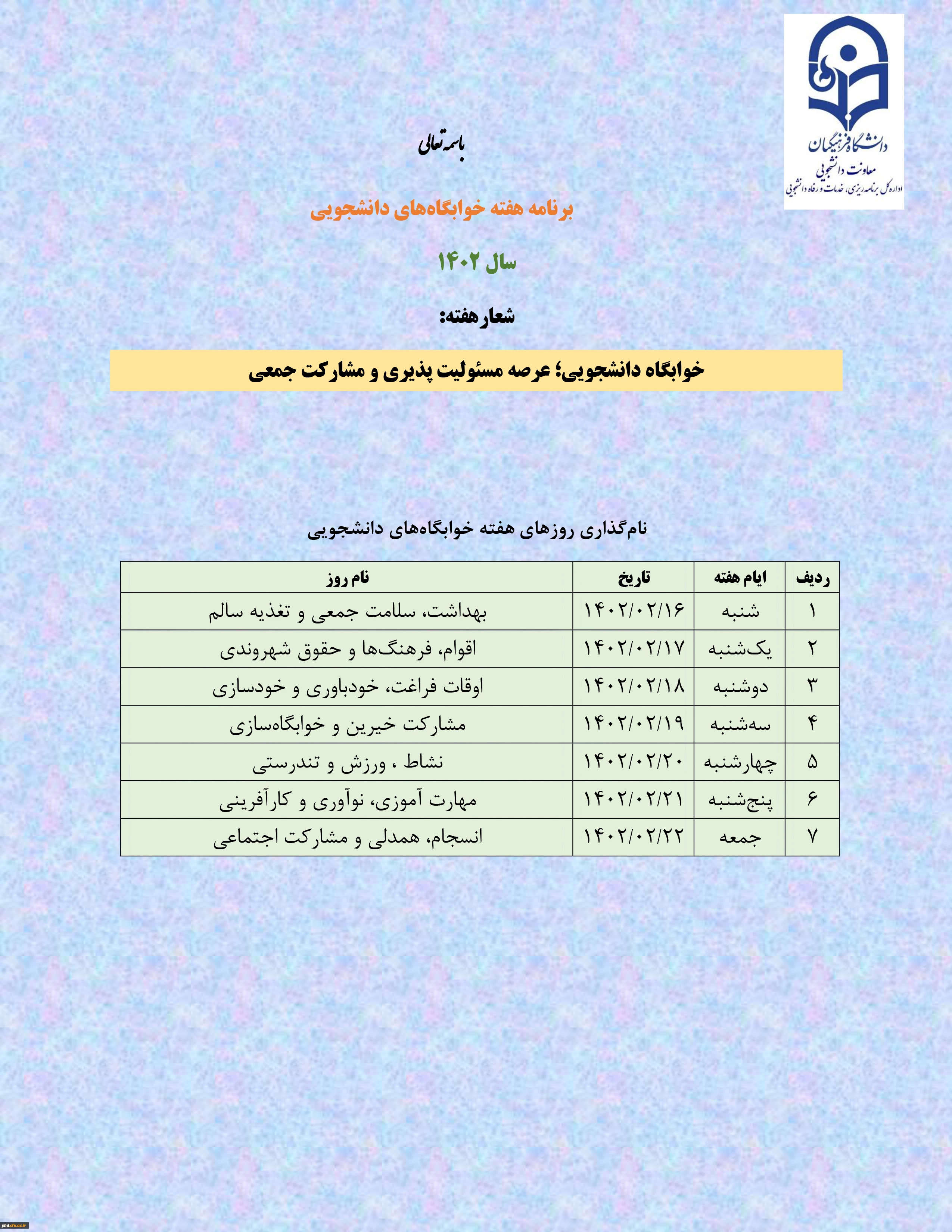 هفـته ســراهای دانشــــجویی گــرامی بــاد