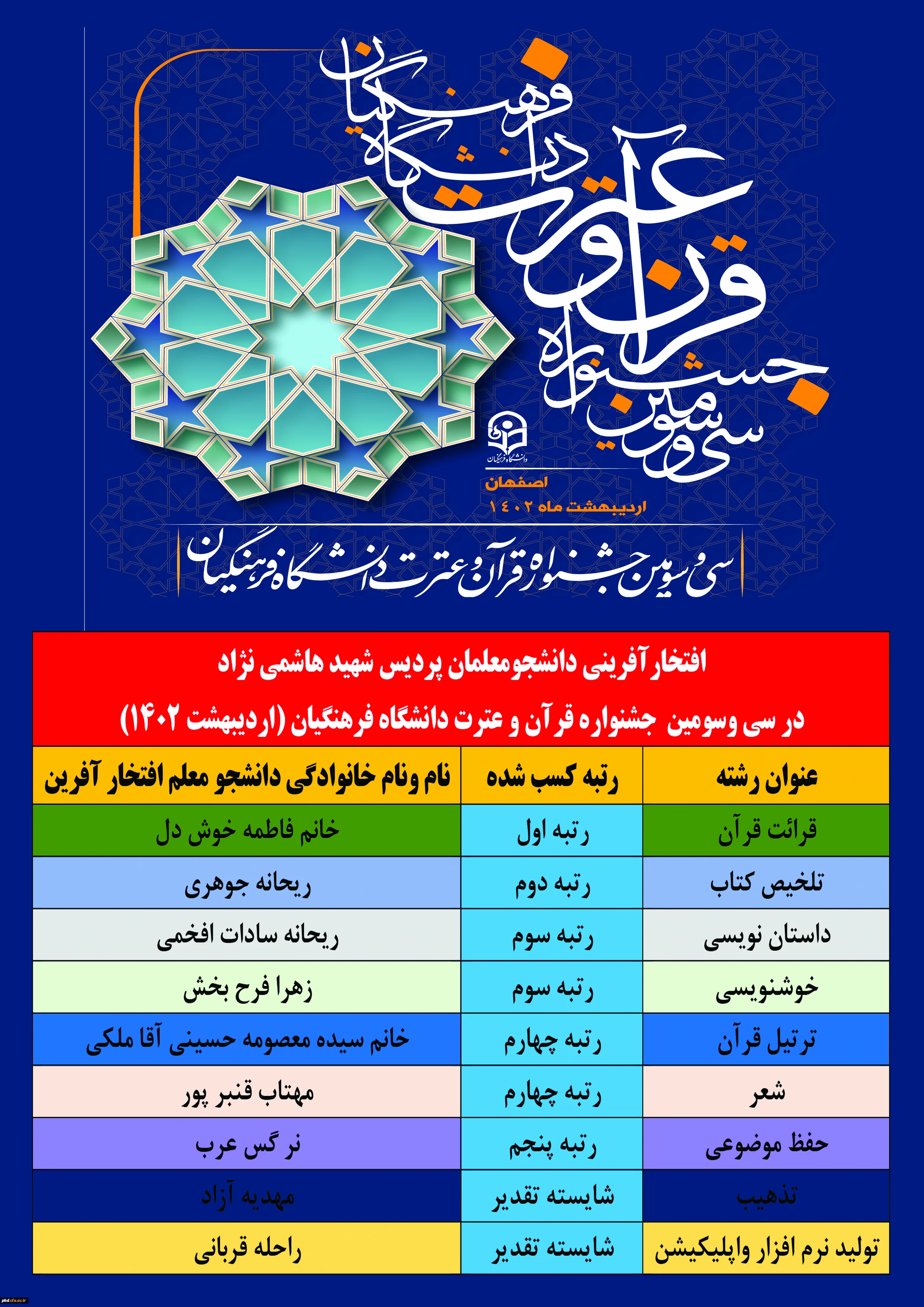 درخشش دانشجو معلمان پردیس شهید هاشمی نژاد