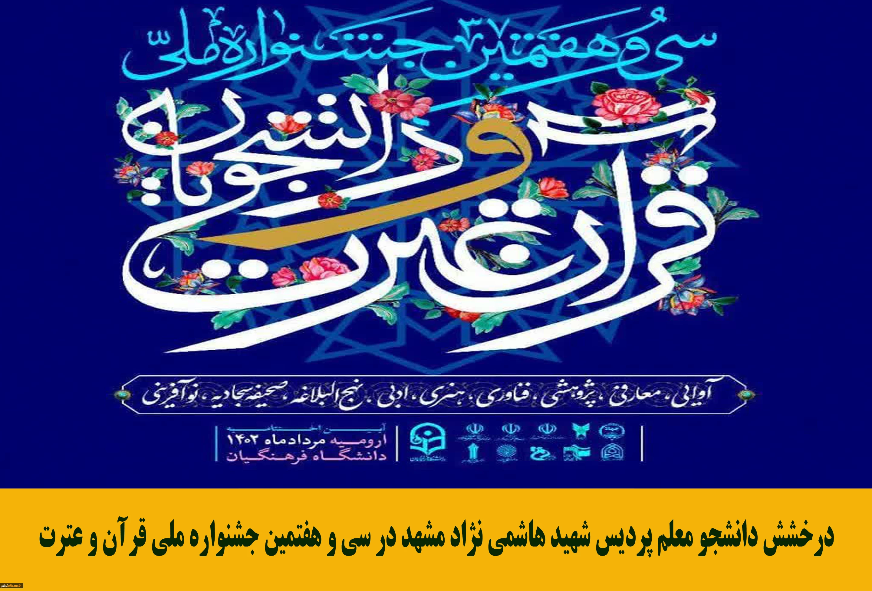 امتیاز دهید : درخشش دانشجو معلم پردیس شهید هاشمی نژاد مشهد در سی و هفتمین جشنواره ملی قرآن و عترت 2 سهشنبه 3 مرداد 1402 ساعت 19:57