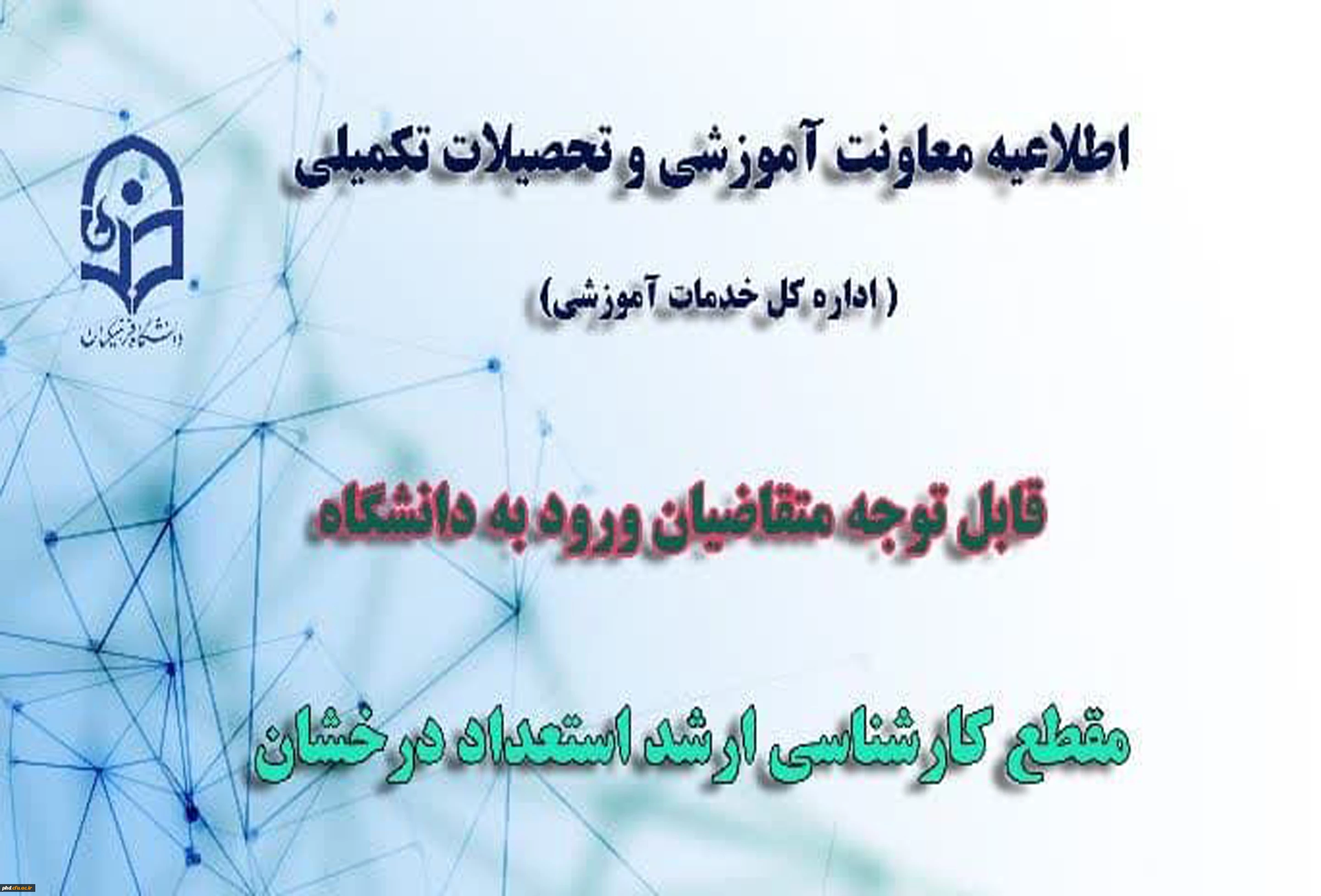 امتیاز دهید : قابل توجه متقاضیان ورود به دانشگاه در مقطع کارشناسی ارشد استعداد درخشان 2 چهارشنبه 25 مرداد 1402 ساعت 9:59