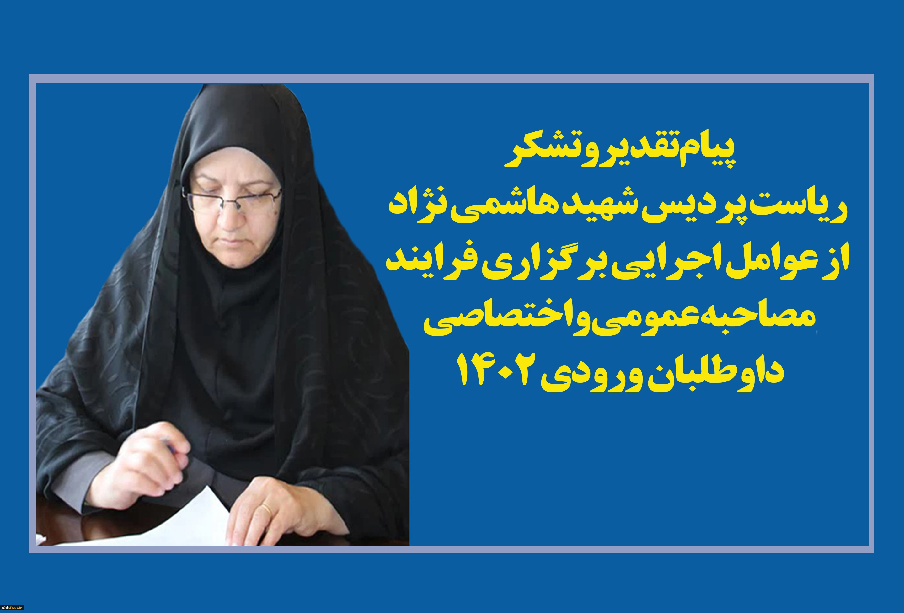 پیام تقدیر وتشکر ریاست پردیس شهید هاشمی نژاد از عوامل اجرایی برگزاری فرایند مصاحبه عمومی واختصاصی داوطلبان ورودی 1402 2
