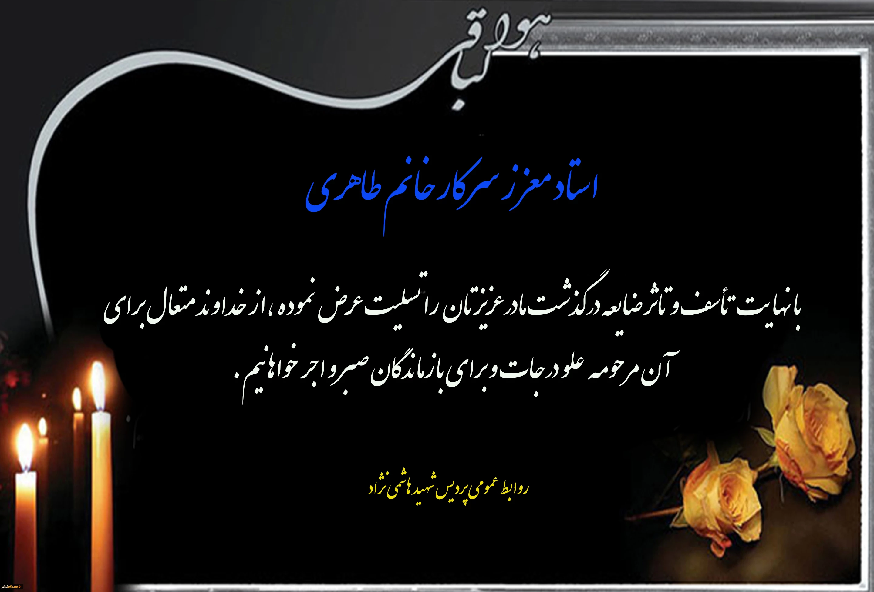 پیام تسلیت به استاد معزز سرکار خانم طاهری 2
