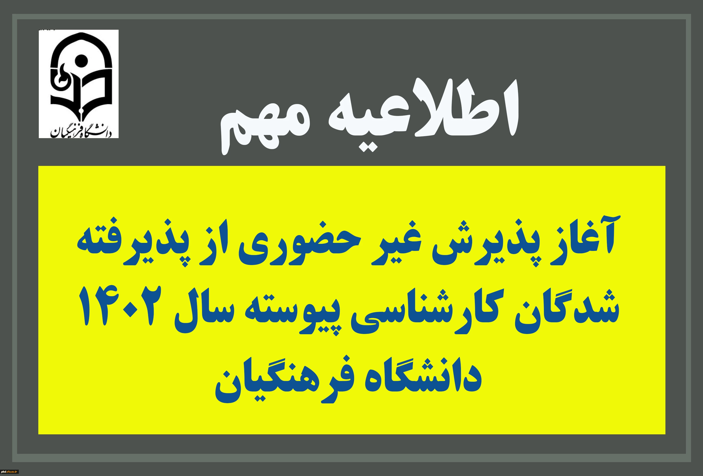 امتیاز دهید : آغاز پذیرش غیر حضوری از پذیرفته شدگان کارشناسی پیوسته سال 1402 دانشگاه فرهنگیان 2 پنجشنبه 20 مهر 1402 ساعت 17:15
