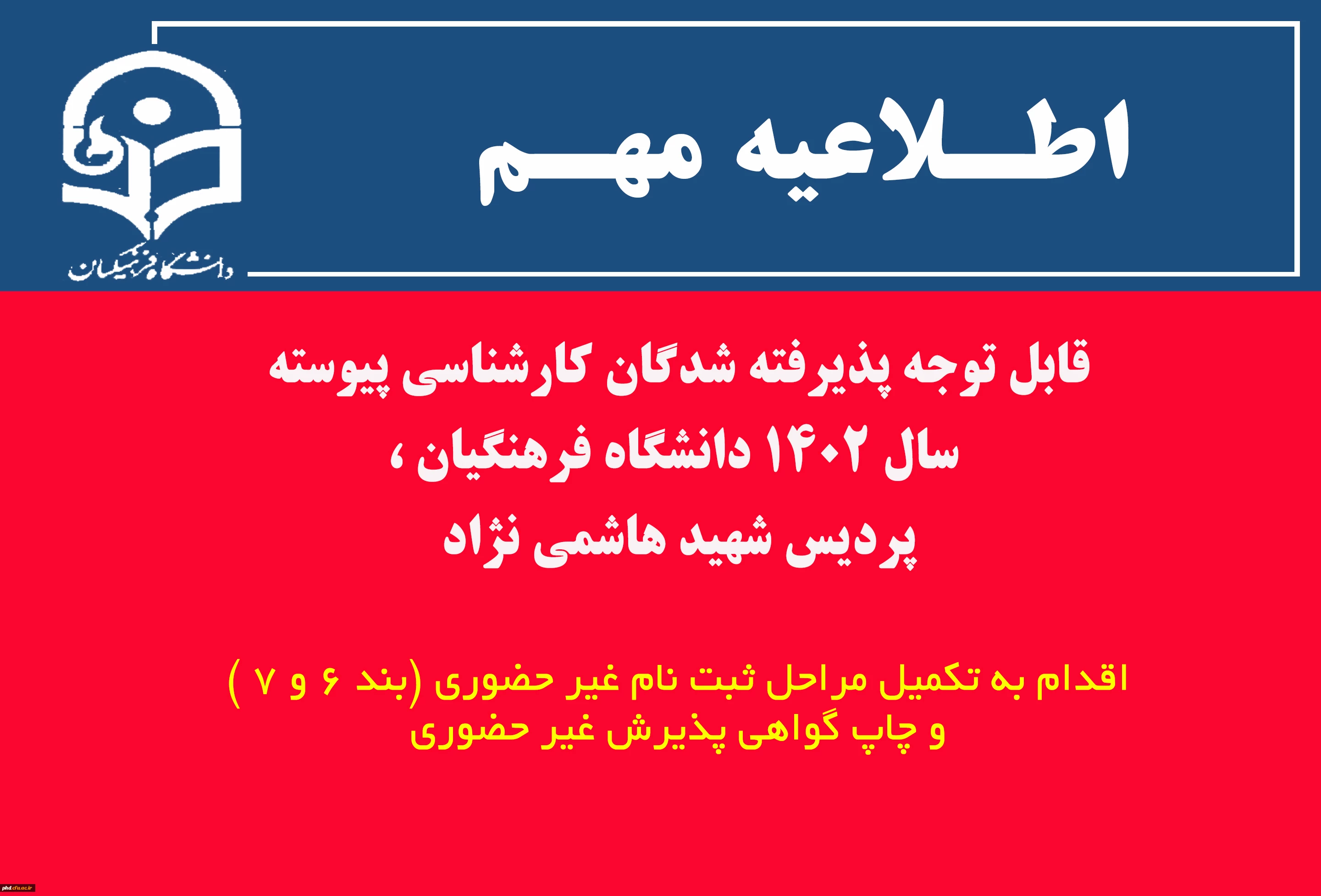 قابل توجه پذیرفته شدگان کارشناسی پیوسته سال ۱۴۰۲ دانشگاه فرهنگیان ،پردیس شهید هاشمی نژاد 2