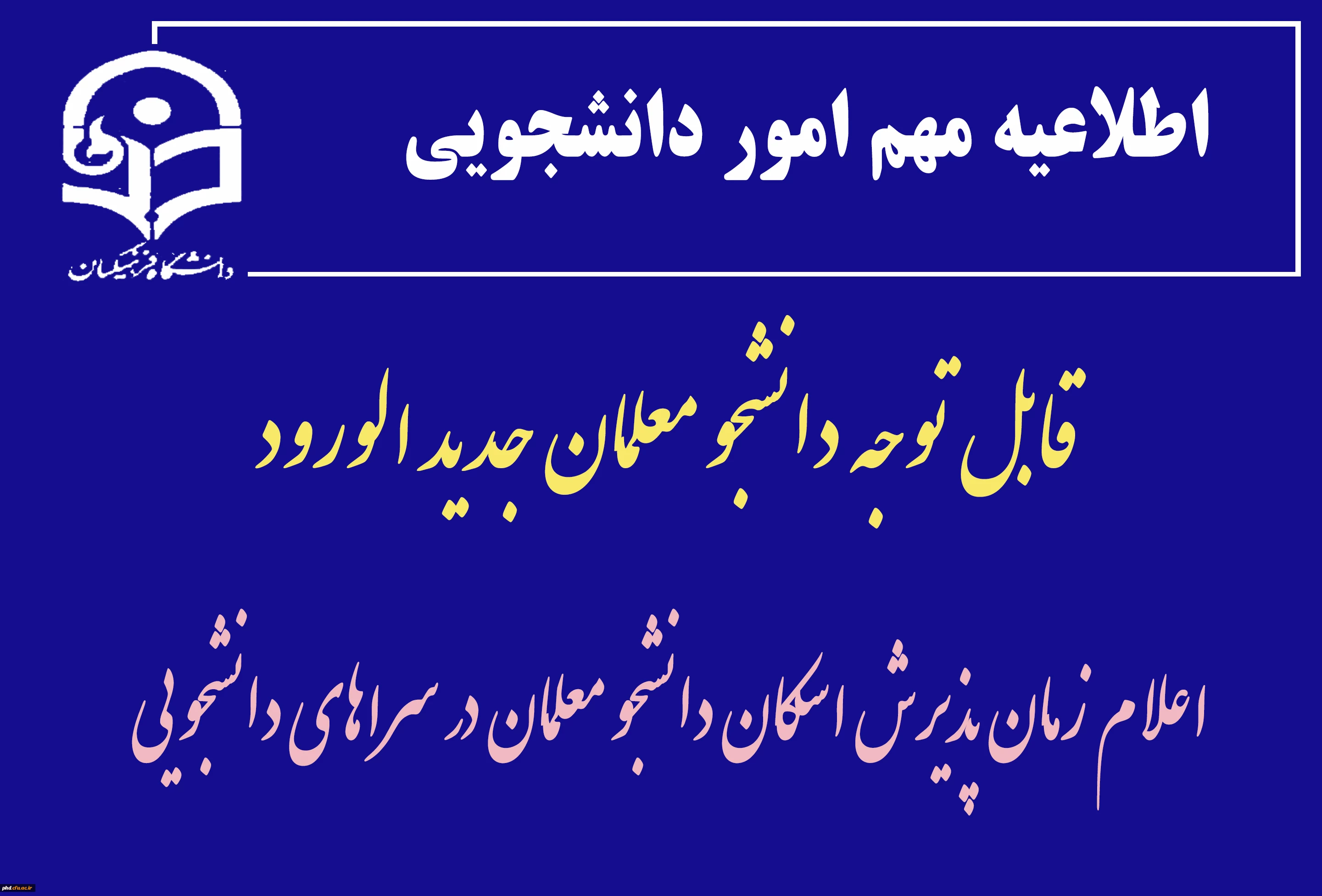 امتیاز دهید : اعلام زمان پذیرش اسکان دانشجو معلمان در سراهای دانشجویی 2 دوشنبه 1 آبان 1402 ساعت 10:15