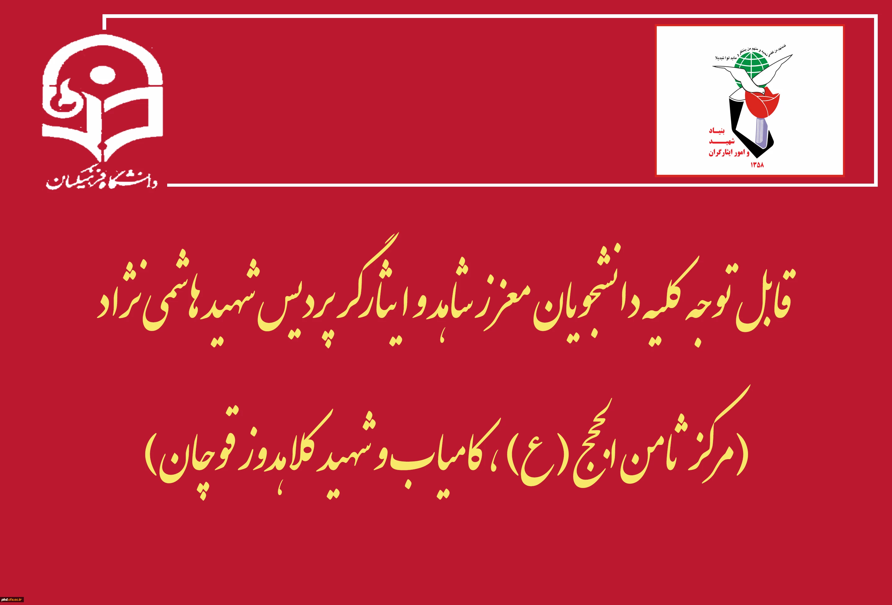 قابل توجه کلیه دانشجویان معزز شاهد و ایثارگر پردیس شهید هاشمی نژاد (مرکز ثامن الحجج (ع) ، کامیاب و شهید کلاهدوز قوچان) 2