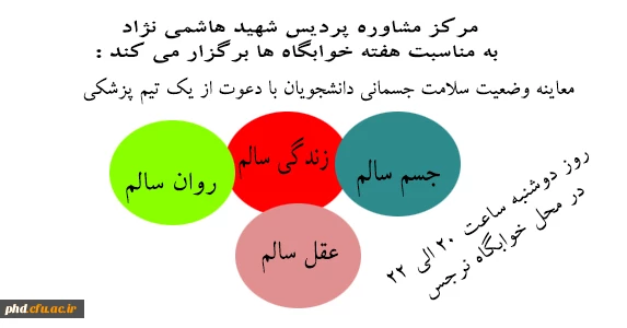 مرکز مشاوره پردیس شهید هاشمی نژاد به مناسبت هفته خوابگاه ها برگزار می کند :