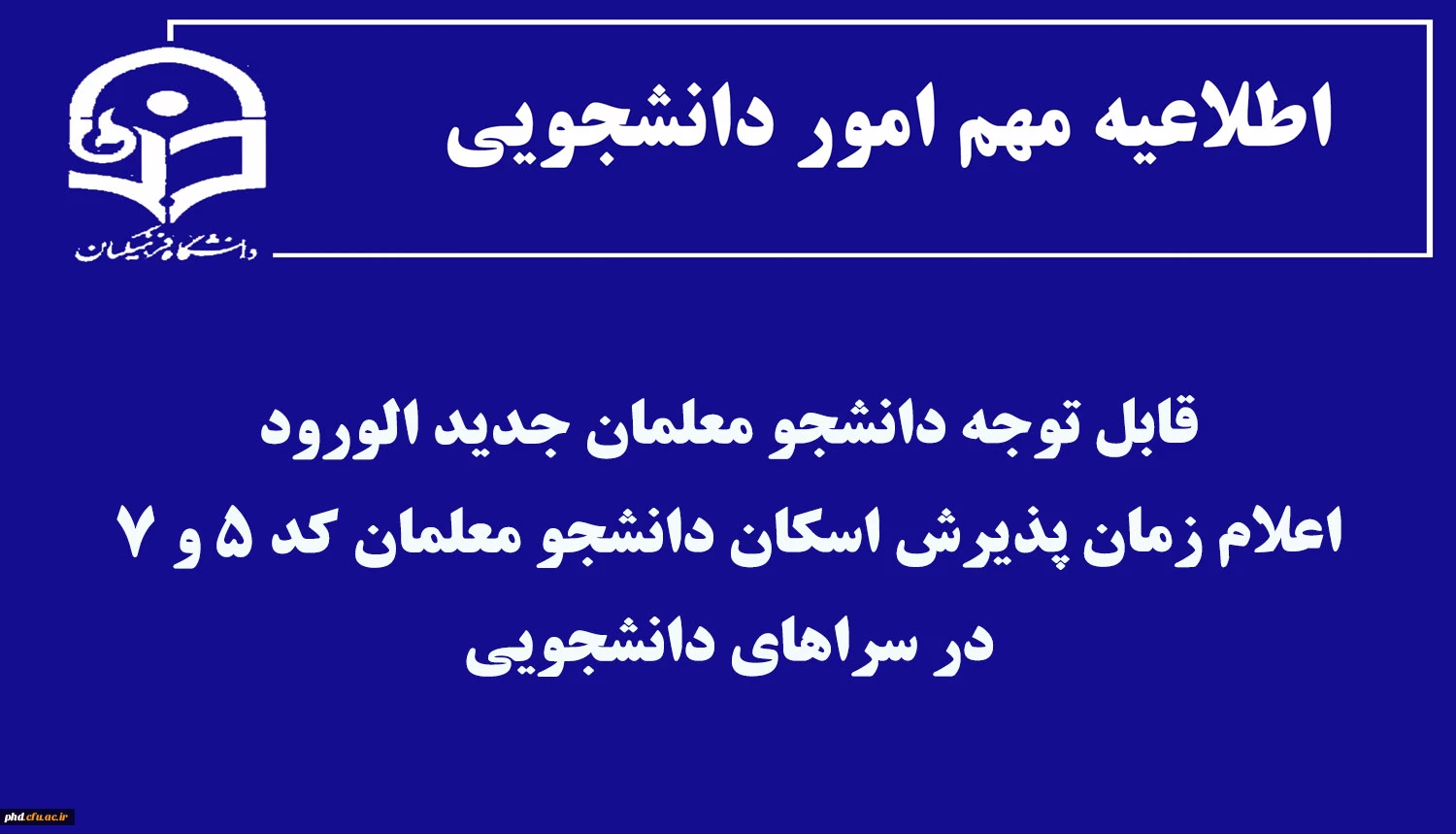 اعلام زمان پذیرش اسکان دانشجو معلمان در سراهای دانشجویی 2