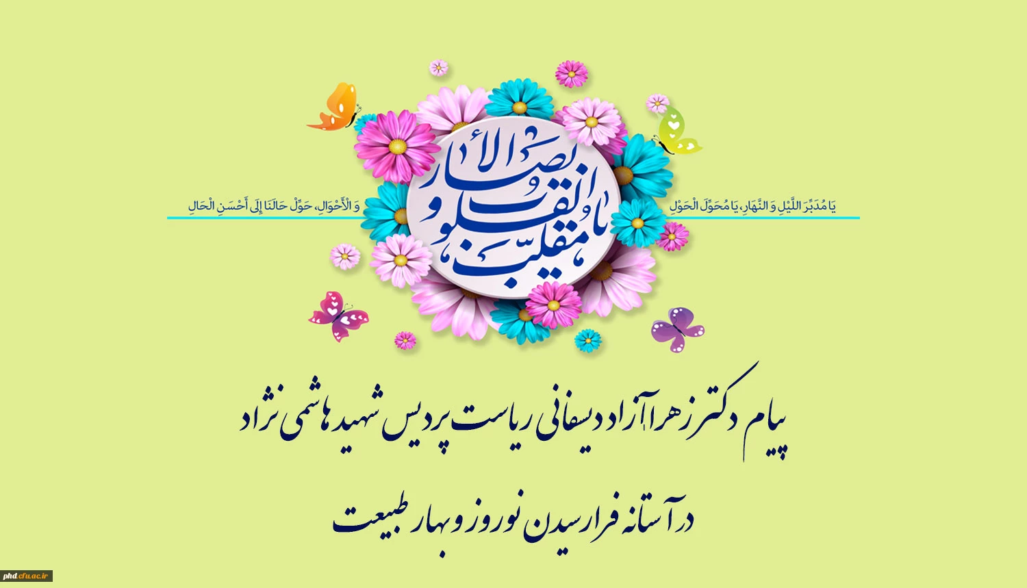 پیام دکتر زهرا ـآزاد دیسفانی ریاست پردیس شهید هاشمی نژاد درآستانه فرارسیدن نوروز وبهار طبیعت 2