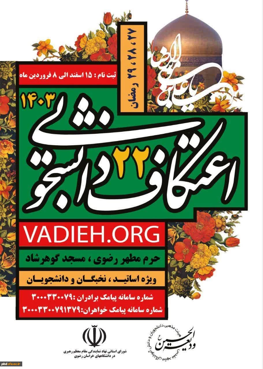 امتیاز دهید : اطلاعیه شماره یک،بیست و دومین اعتکاف دانشجویی و اساتید_1403 یکشنبه 27 اسفند 1402 ساعت 22:31