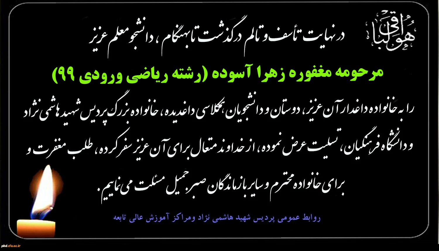 پیام تسلیت درگذشت تابهنگام ، دانشجومعلم عزیز مرحومه مغفوره زهرا آسوده (رشته ریاضی ورودی 99) 2