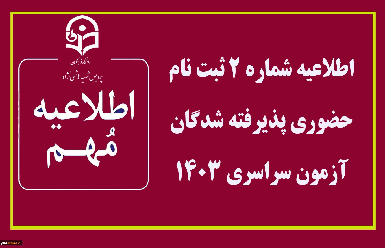 اطلاعیه شماره 2 ثبت نام حضوری پذیرفته شدگان  آزمون سراسری 1403 2