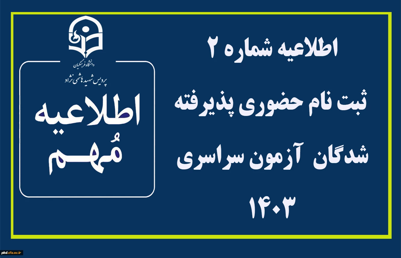 اطلاعیه ثبت نام حضوری پذیرفته شدگان مقطع کاردانی و کارشناسی پیوسته آزمون سراسری سال ۱۴٠3 پردیس شهید هاشمی نژاد مشهد 2