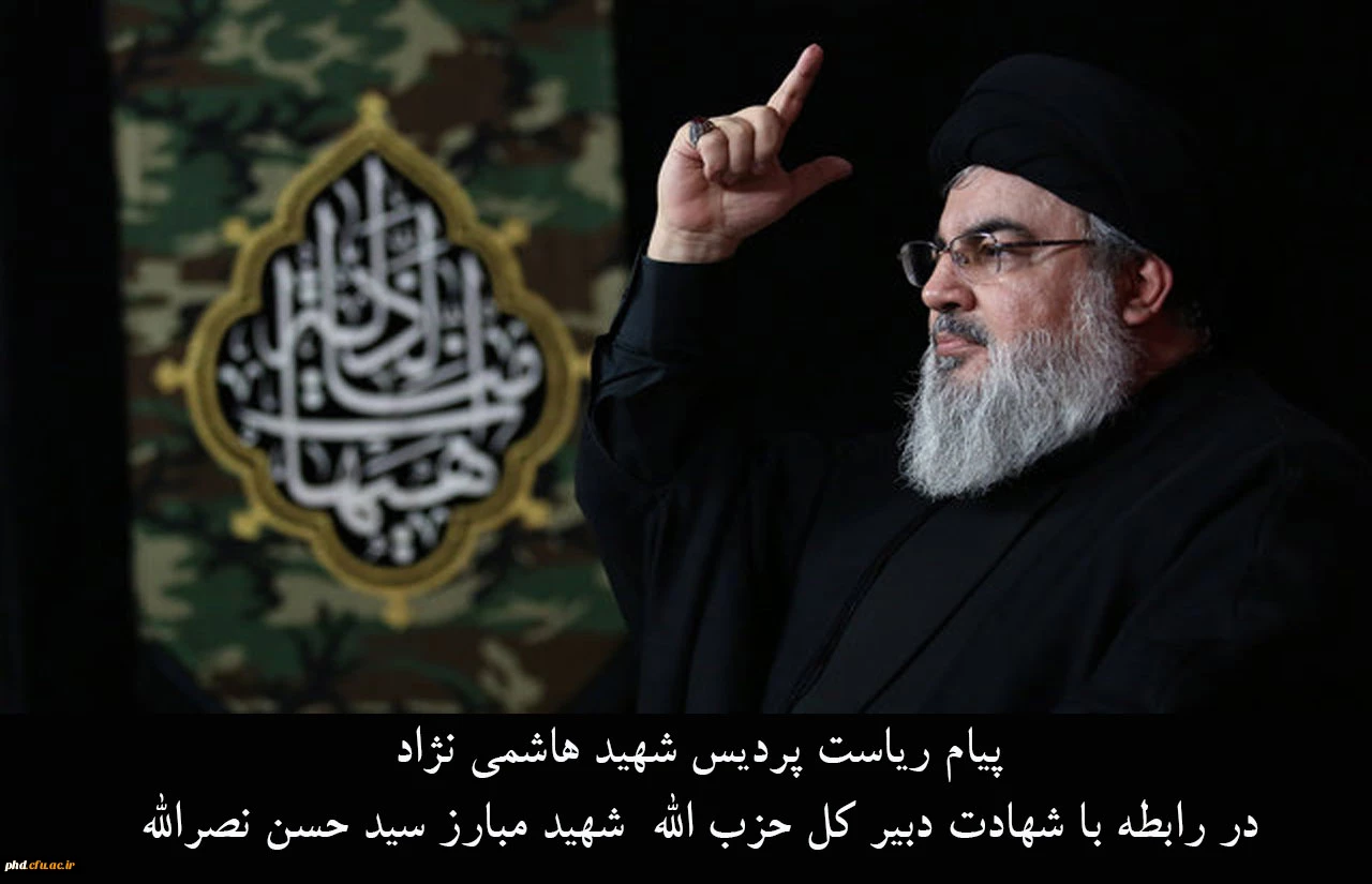 پیام ریاست پردیس شهید هاشمی نژاد در رابطه با شهادت دبیر کل حزب الله شهید مبارز سید حسن نصرالله 2
