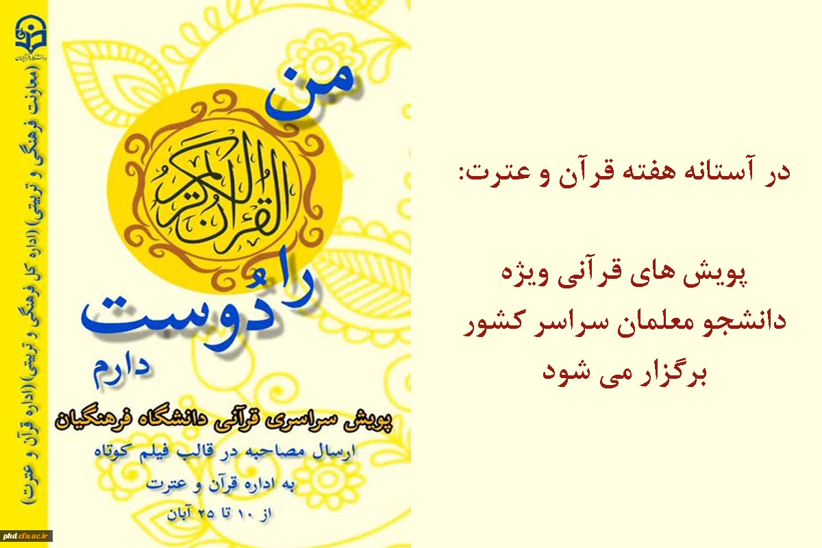 امتیاز دهید : پویش های قرآنی ویژه دانشجو معلمان سراسر کشور برگزار می شود 2 یکشنبه 20 آبان 1403 ساعت 13:47