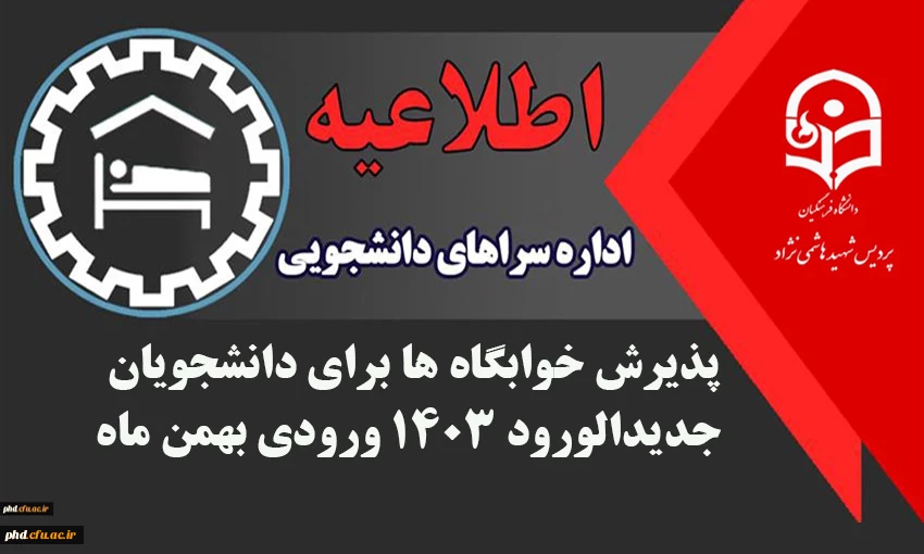 امتیاز دهید : پذیرش خوابگاه ها برای دانشجویان جدیدالورود 1403 ورودی بهمن ماه 2 سهشنبه 16 بهمن 1403 ساعت 13:17