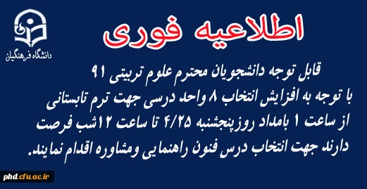 قابل توجه دانشجویان محترم علوم تربیتی 91