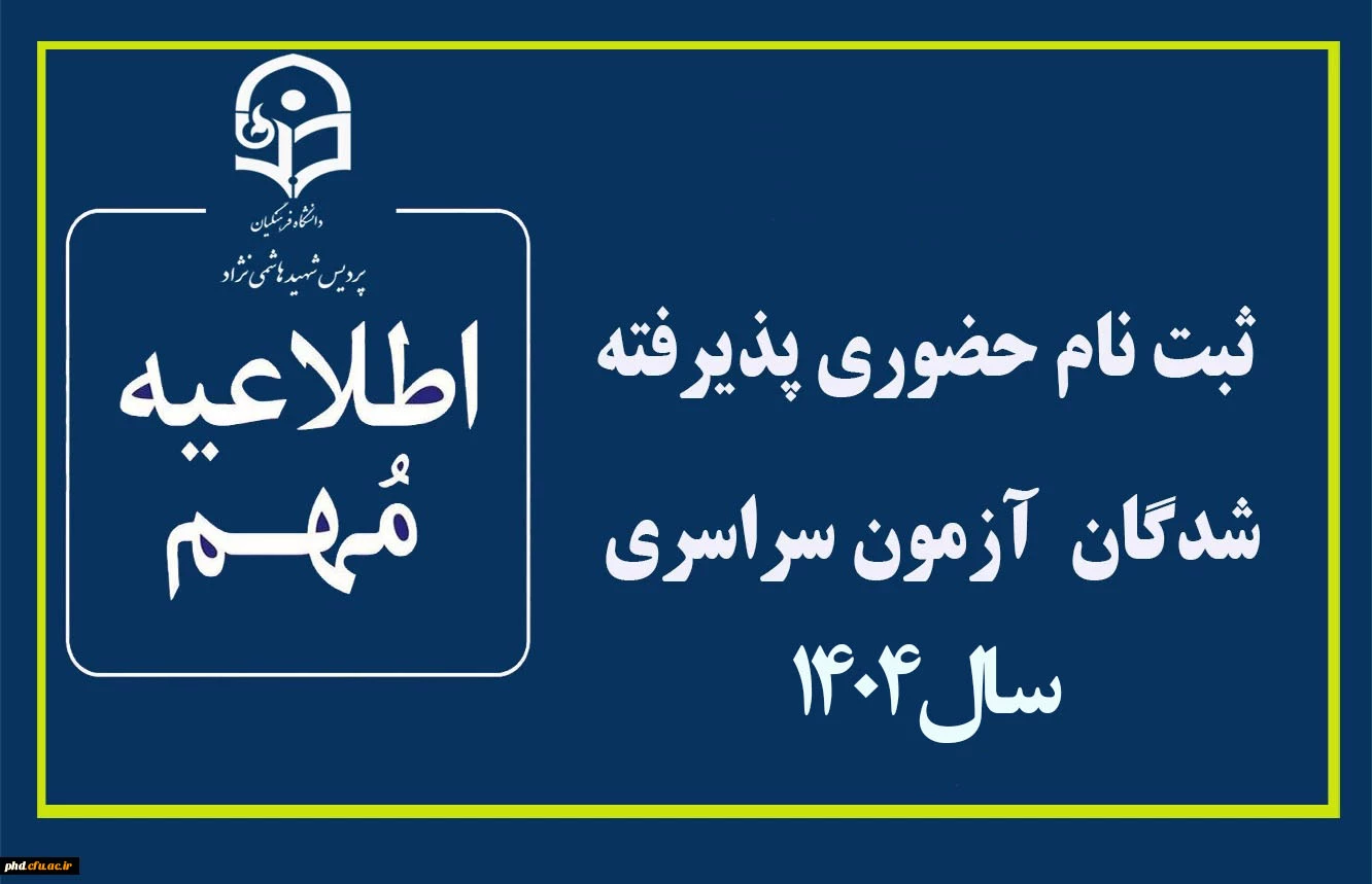 اطلاعیه ثبت نام حضوری پذیرفته شدگان آزمون سراسری سال 1404 2